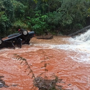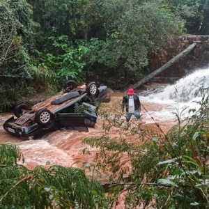Segundo o que informou o motorista, ele conseguiu sair do veículo, mas foi arrastado pela correnteza para uns 40 metros abaixo aí conseguiu voltar e tirar a sua filha que estava dentro do carro se segurando no banco.