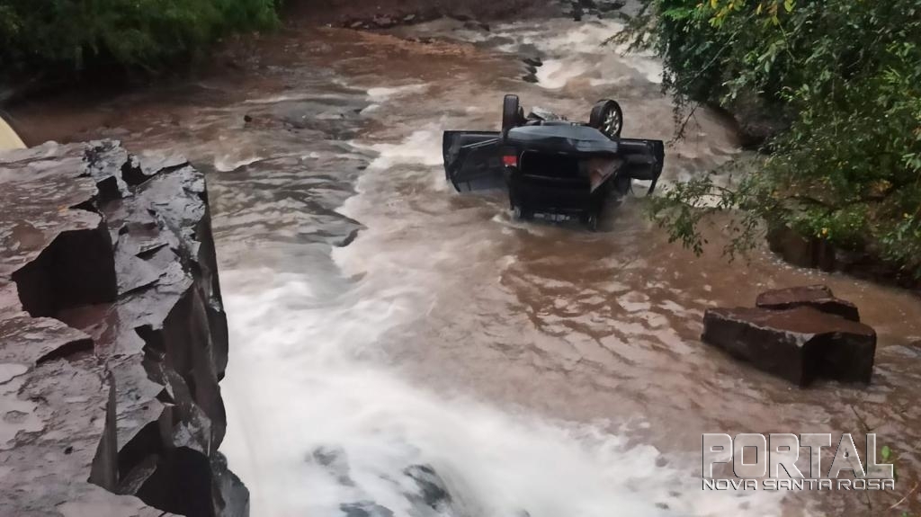 No domingo o veículo Santana com placas de Toledo que era conduzido por Fagner Dias de Souza de 28 anos morador na Linha Mareco caiu no rio e segundo informações, ele foi visitar o seu pai, quando voltava com a sua filha de 5 anos atravessou o rio, aonde não existe ponte, como havia chovido muito e a correnteza estava forte, o veículo foi arrastado caindo abaixo da cachoeira ficando com as rodas para cima.