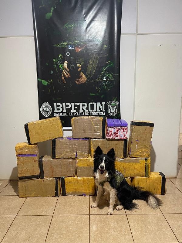 Na residência aparentemente abandonada o cão de faro Johnny treinado para localizar drogas, demonstrou interesse, ao adentrarem no quintal foi visualizado um veículo gol, onde o cão fez a indicação positiva, em vistoria constatou-se haver fardos de maconha, após pesagem totalizou 208,700 kg.