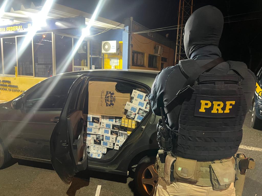 O contrabando de cigarros foi localizado após buscas no veículo, sendo que o condutor alegou que teria pego o carro carregado próximo a Toledo e que levaria até Ponta Grossa.