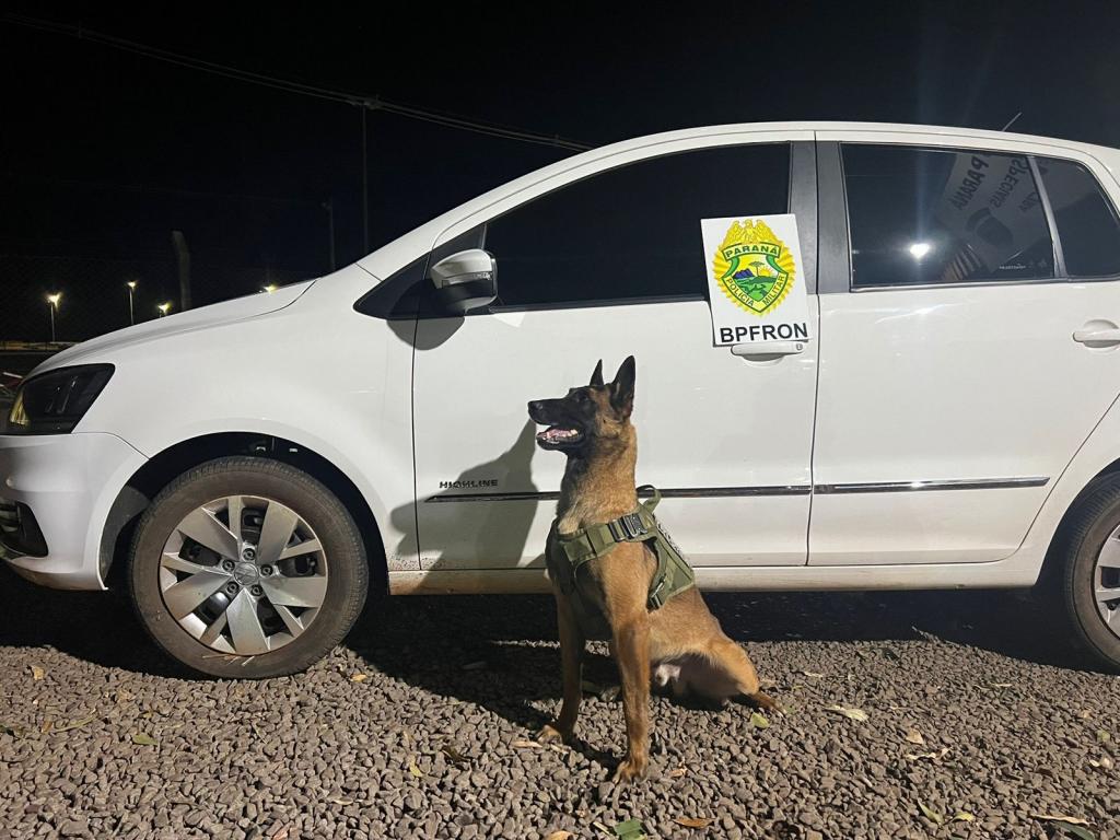 No domingo (24) policiais do Pelotão de Operações com Cães do BPFRON - Batalhão de Polícia de Fronteira, durante patrulhamento na cidade de Pato Bragado-PR, avistaram um veículo transitando em uma via.