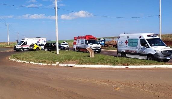 Na tarde desta terça-feira (02), foi registrado um acidente de trânsito no trevo em frente à fábrica de rações, na entrada da cidade de Entre Rios do Oeste.