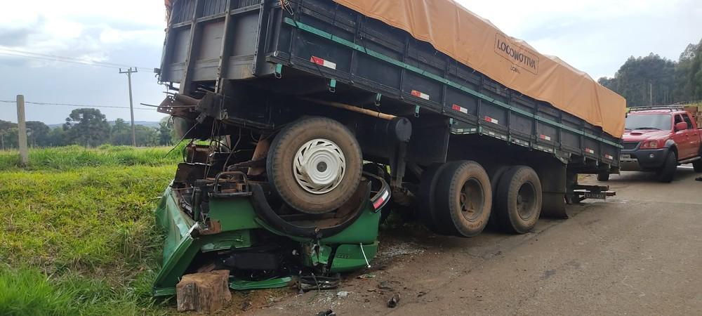 A carroceria de um caminhão se soltou e esmagou a cabine do próprio veículo em Guarapuava, região central do Paraná.