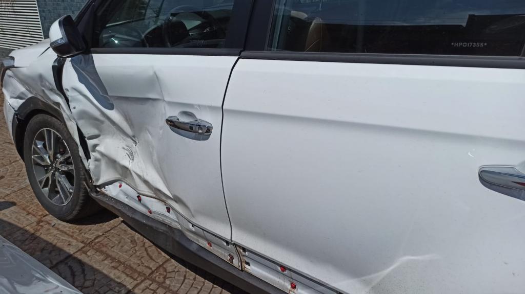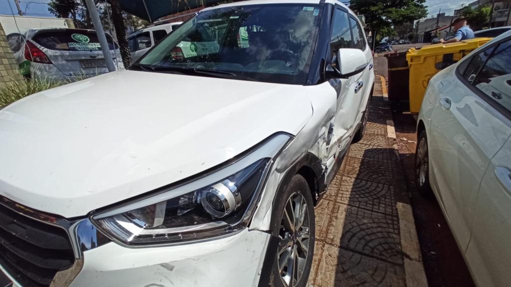 Após a colisão, o Hyundai atingiu um container de lixo e avançou sobre a calçada, parando sobre ela.