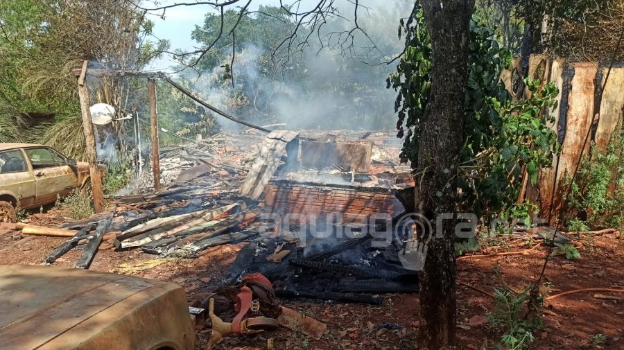 Uma casa antiga de madeira pegou fogo próximo ao Clube Comunitário da Linha Concórdia. Atualmente a casa era usada como depósito de ferramentas.