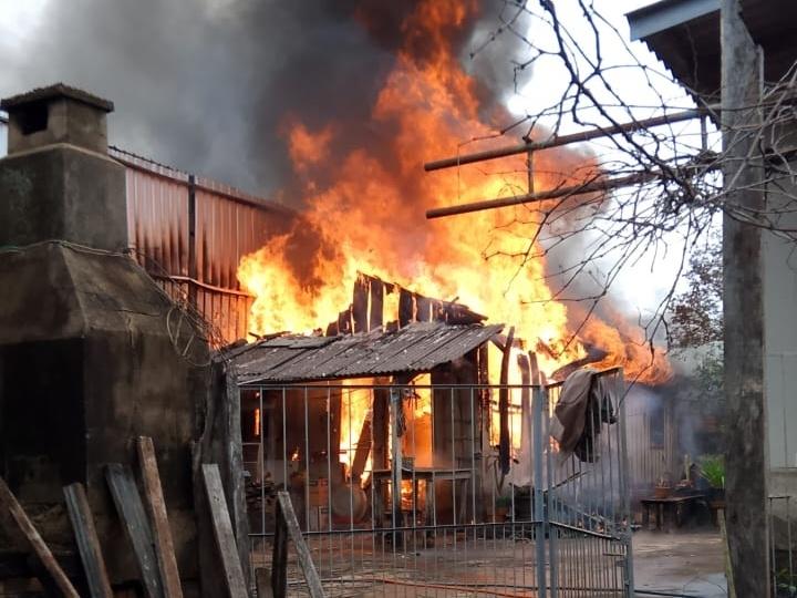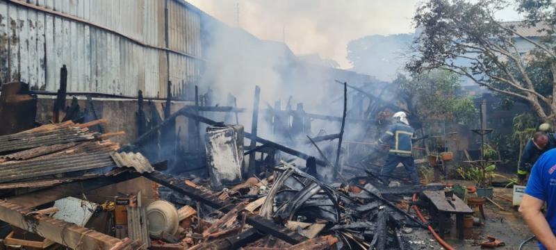 Rapidamente, o Corpo de Bombeiros foi acionado para combater o fogo, mas as chamas de grandes proporções consumiram completamente a casa.
