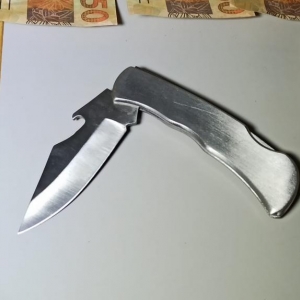 Quando o casal parou, foi abordado pelo homem com um canivete, ele anunciou o assalto.