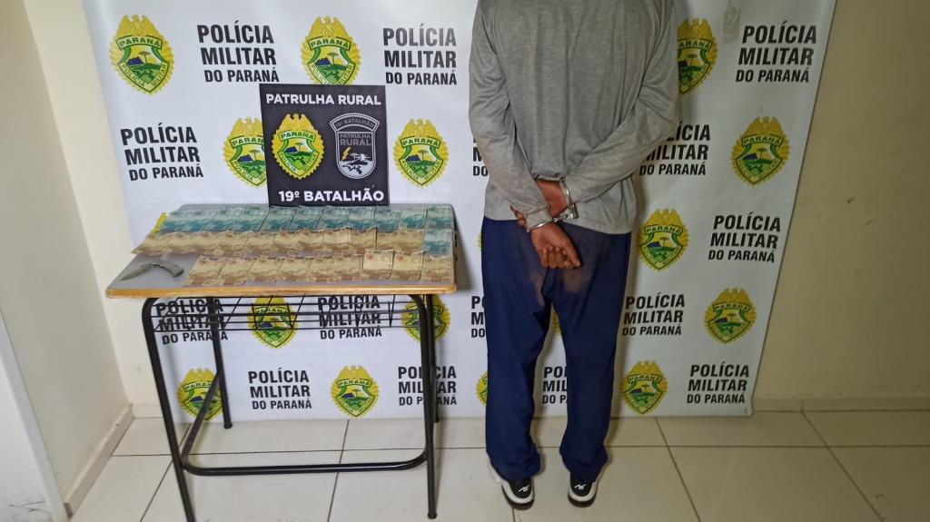 Um homem de 23 anos foi detido pela Polícia Militar durante um assalto a um casal de idosos em uma estrada rural no interior de Toledo nesta sexta-feira (19).