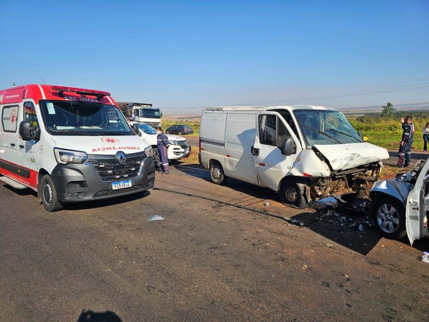 O motorista, de 38 anos, que seguia com a Van, sofreu traumatismo craniano e foi encaminhado ao Hospital Bom Samaritano.