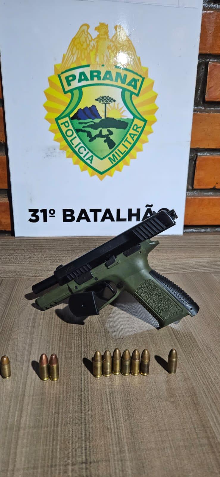 O marido confessou o crime e disse onde estaria a arma de fogo. O casal foi encaminhado para a delegacia e a pistola apreendida.