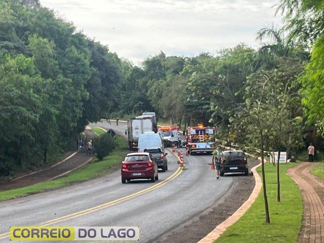Um acidente de trânsito foi registrado na tarde desta quinta-feira (30) na conhecida Curva do Ogregon, em Santa Helena. A colisão envolveu um caminhão e uma motocicleta Honda Fan 160. As primeiras informações apontam que o condutor do caminhão teria se evadido do local após a batida.