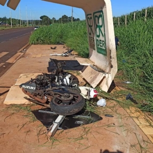 Com o impacto, os dois ocupantes foram arremessados a vários metros de distância, caindo em uma área de vegetação às margens da rodovia. A moto ficou completamente destruída.