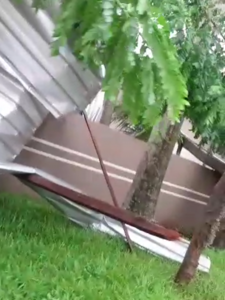 Chuva com vento provoca destelhamento e deixa comunidade sem energia, em Mercedes