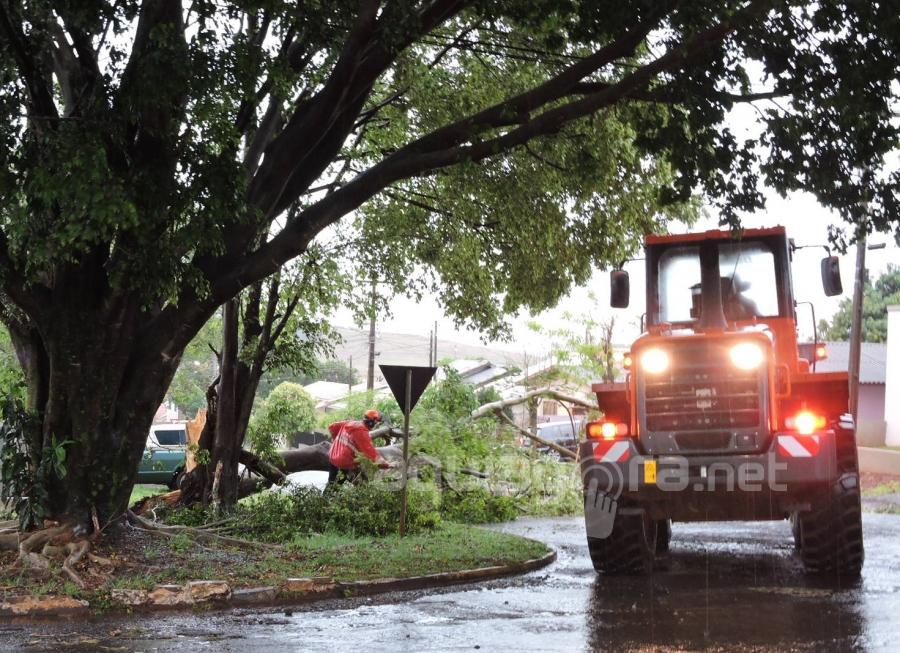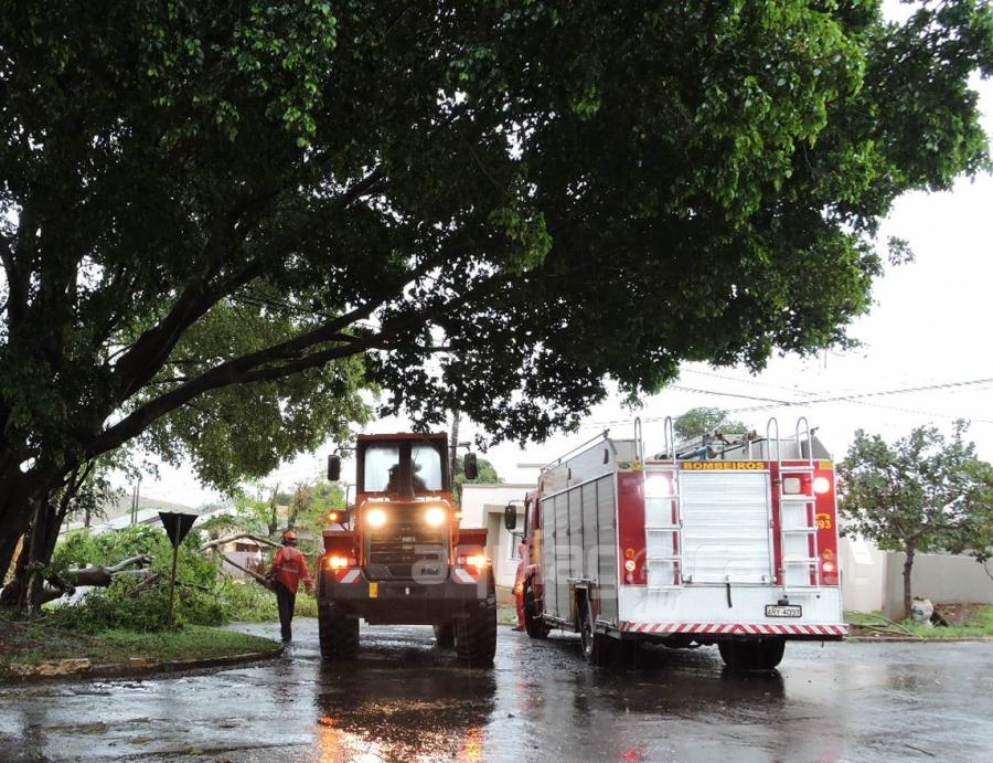 Durante a manhã equipe do Corpo de Bombeiros foi acionada para retirar galhos e árvores que caíram devido à chuva e vento da noite e madrugada.