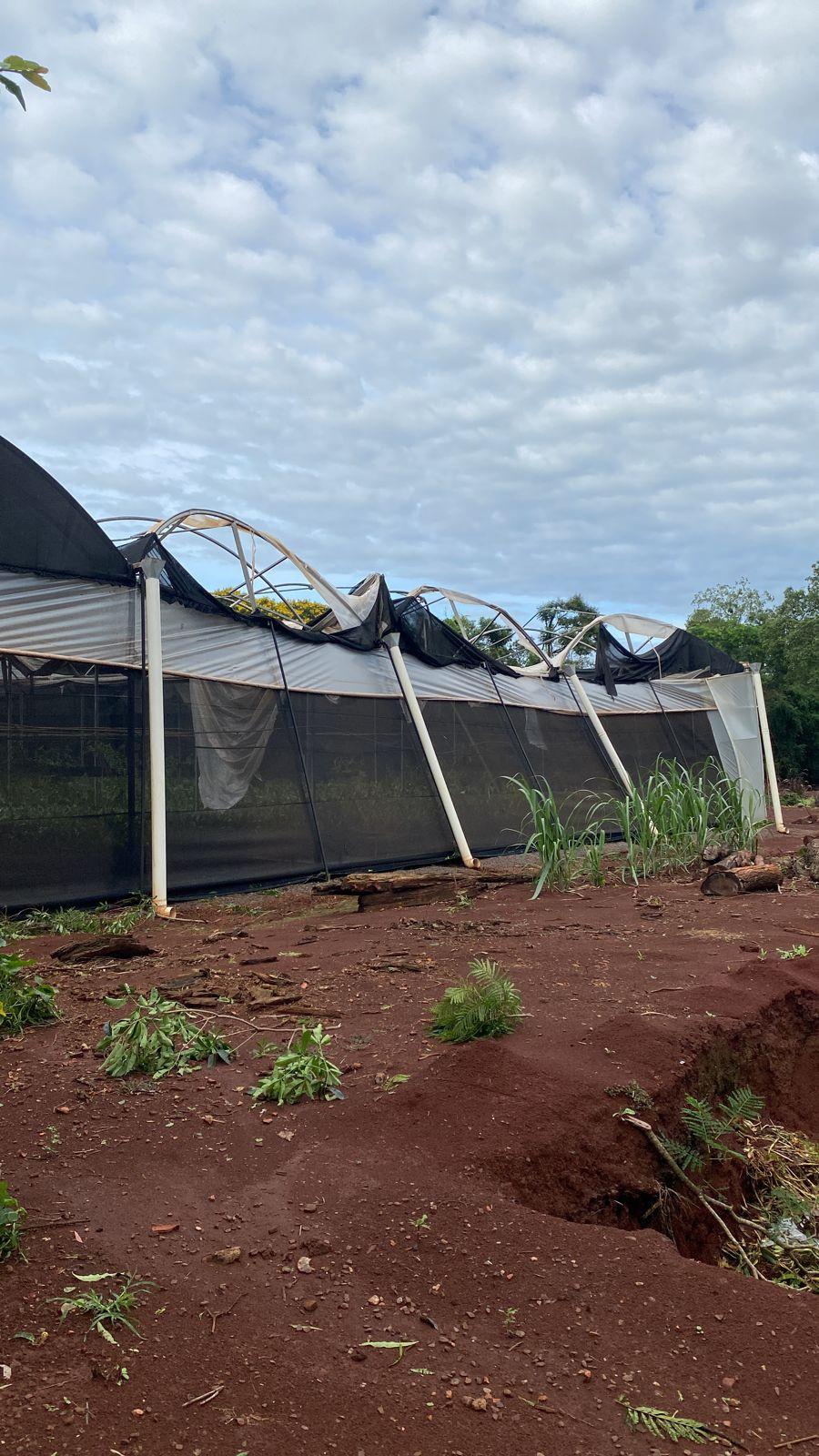 Três estufas de mil metros cada, somando três mil metros e o telhado da área residencial foram afetados.