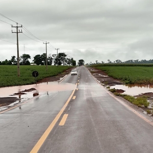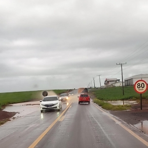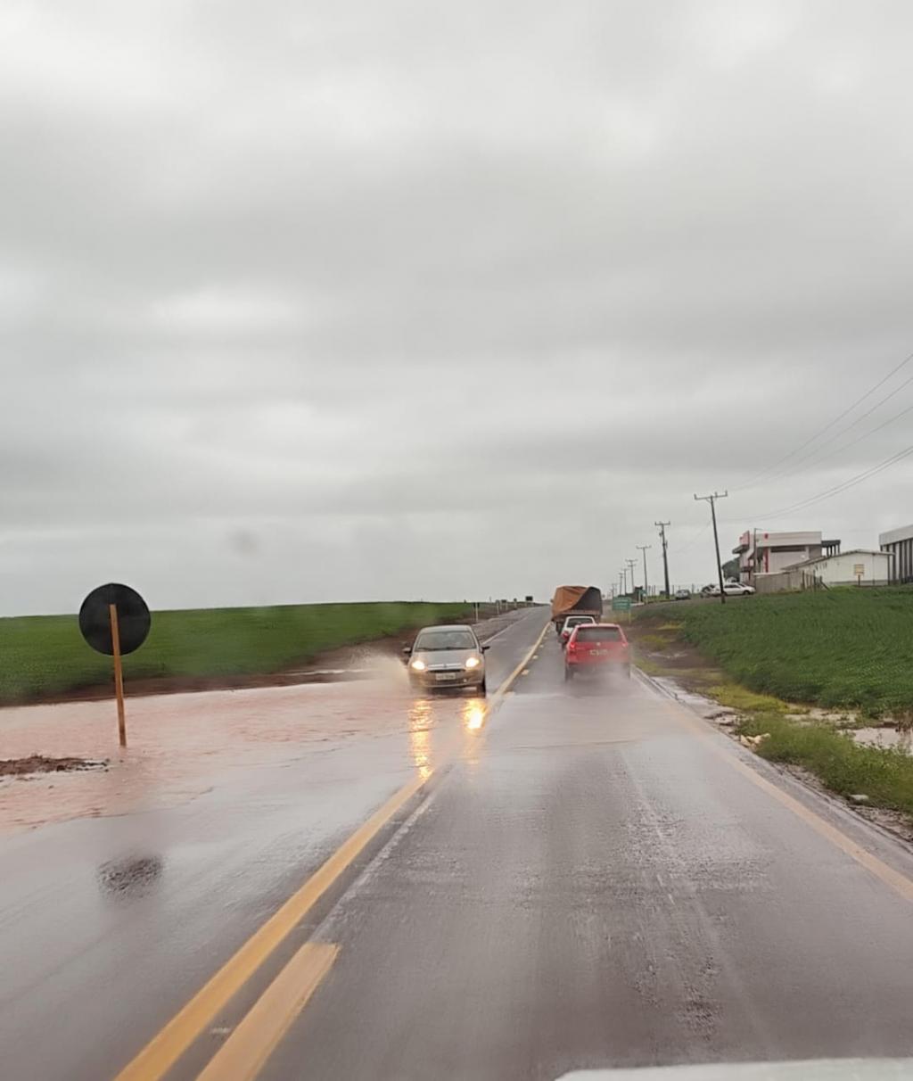 Outro ponto crítico foi registrado antes do Distrito de Novo Blumenau, onde também há acúmulo de água na pista. A situação ainda foi reportada na PR 182, nas proximidades da Cerâmica Drisner, sentido Toledo, onde o internauta observou o acúmulo de água no início da manhã.