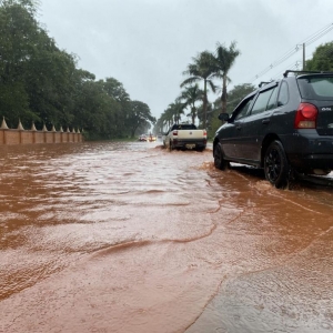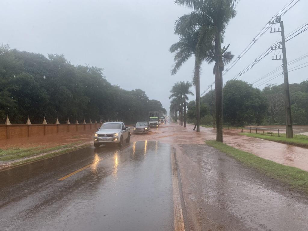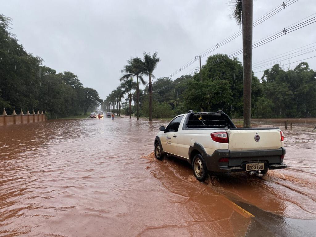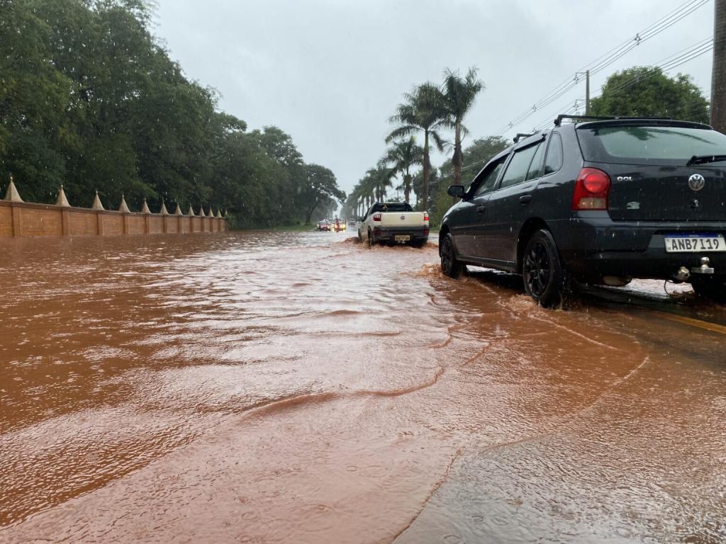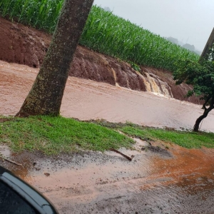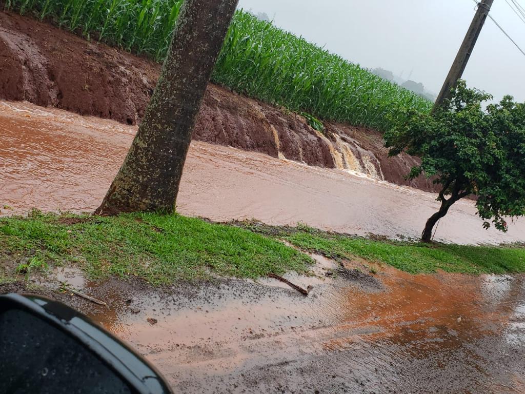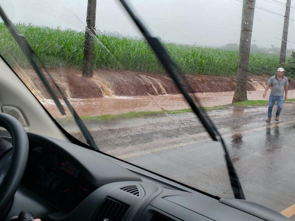 Nas proximidades da Polícia Rodoviária Estadual também houve alagamentos, nas imagens pode-se notar grande quantidade de água saindo das lavouras.