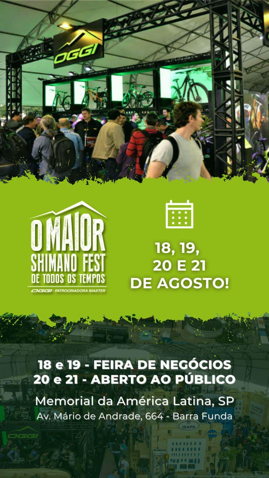 Nos dias 18, 19, 20 e 21 de agosto, por exemplo, representantes da empresa participarão do Maior Evento Shimano Fest de Todos os Tempos, que será no Memorial da América Latina, em São Paulo.