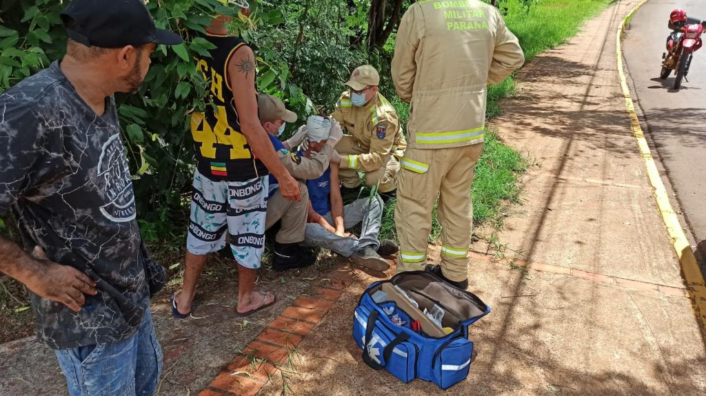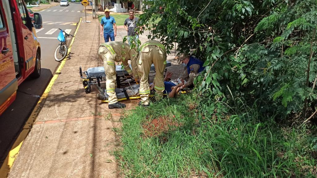 Um ciclista sofreu uma queda na tarde deste sábado na rua Waldemar Turatti no bairro Santa Clara 4 em Toledo.
