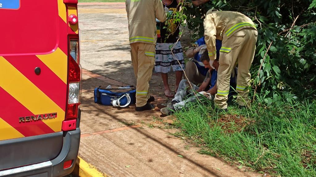 O corpo de bombeiro foi acionado e socorreu o ciclista com escoriações pelo corpo, uma luxação na cabeça e uma suspeita de fratura na clavícula direita, ele foi conduziu para UPA para atendimento hospitalar.