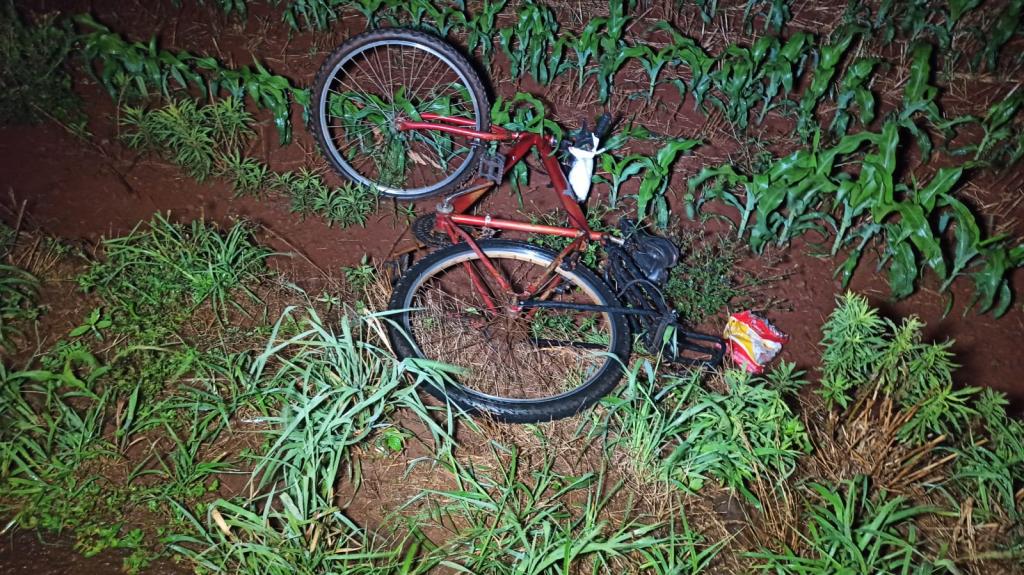 A vítima foi lançada aproximadamente 40 metros do local da batida e caiu dentro de uma lavoura de milho.