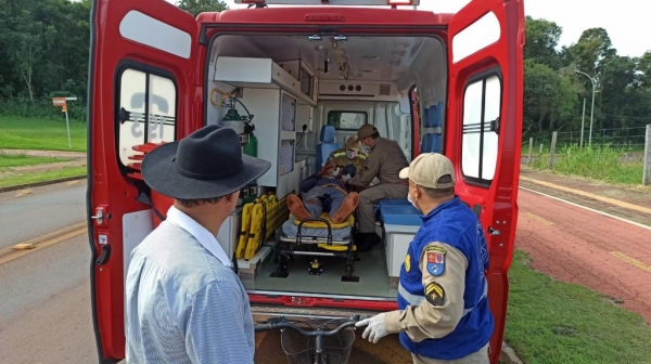 Uma mulher que conduzia um veículo logo atrás do ciclista viu a queda e acionou o corpo de bombeiros que foi encaminhado à UPA.