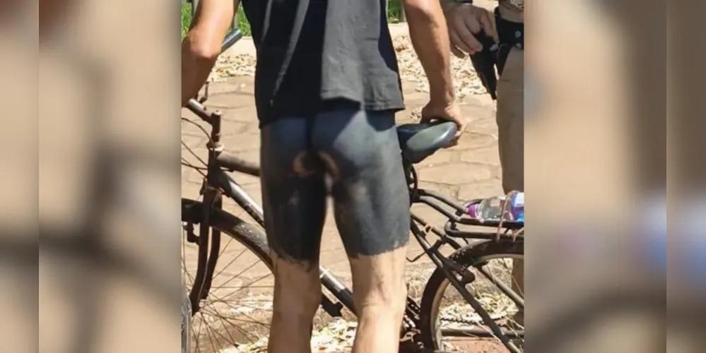 A Polícia Militar encontrou o ciclista durante patrulhamento de rotina, na Rua Santa Terezinha, área de grande fluxo de pedestres. Ele usava shorts e camiseta, no entanto a roupa de baixo era apenas uma pintura.