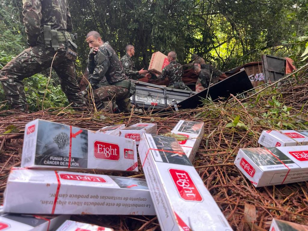 O caminhão estava carregado com cerca de 350 mil maços de cigarros. Veículo e carga foram encaminhados à Receita Federal de Cascavel.