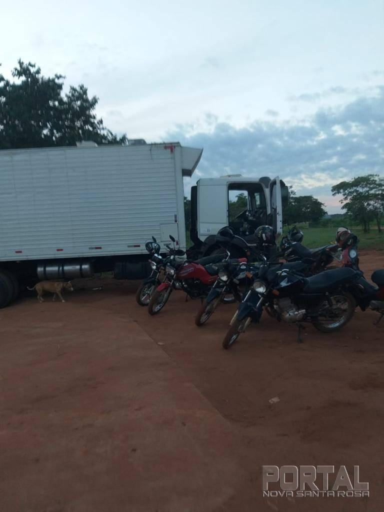 Mais de 300 caixas de cigarro contrabandeadas foram deixadas em uma embarcação, às margens do rio. Um caminhão e outras seis motos também foram apreendidas.
