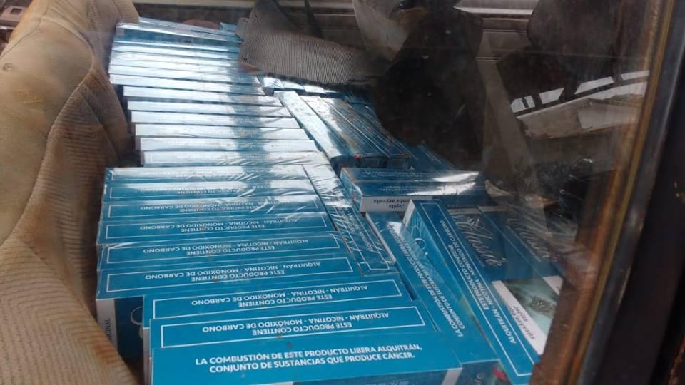 Ao realizar a abordagem, foram encontradas várias caixas de cigarros contrabandeados do Paraguai.