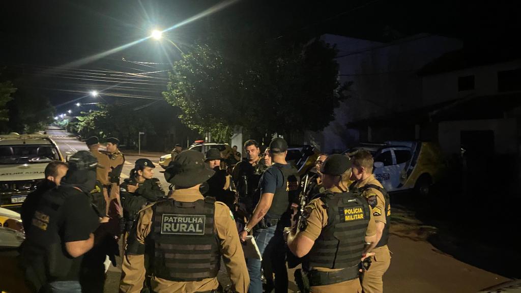 Cinco elementos, sendo quatro homens e uma mulher, foram detidos. Drogas também foram apreendidas e, na sequência, encaminhados a delegacia de polícia de Palotina.