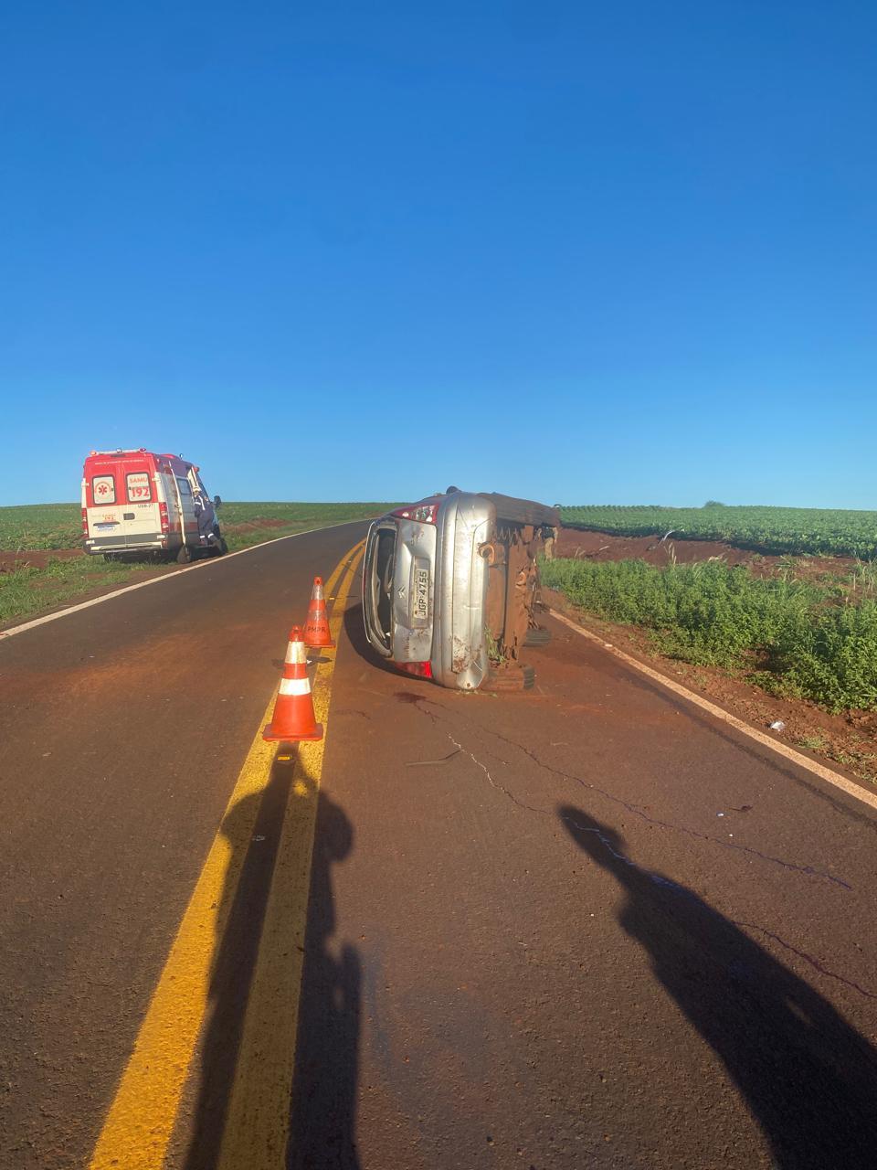 O condutor de 22 anos foi encaminhado a UPA de Toledo com ferimentos moderados, o rapaz seguia sentido a cidade de Tupãssi, ao atingir o km 04 o carro capotou e parou de lado, a Polícia Rodoviária informou que não foi possível a identificação completa do condutor devido a ter sido encaminhado a atendimento médico.