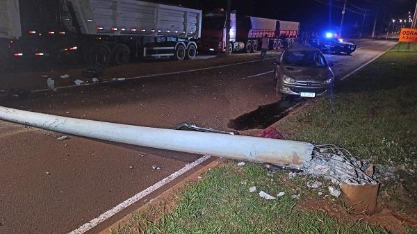 O veículo Peugeot modelo 206 com placas Mercosul trafegava pela avenida e o condutor perdeu o controle da direção subiu no canteiro central e atingiu um poste de iluminação pública, segundo testemunhas que presenciaram o acidente, o condutor abandonou o veículo e em seguida foi embora a pé.