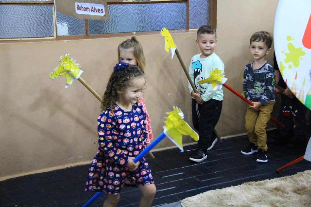 Durante a programação, foram expostas práticas pedagógicas exitosas realizadas ao longo do ano, demonstrando o impacto positivo do projeto na formação das crianças e na integração entre escola, família e comunidade.