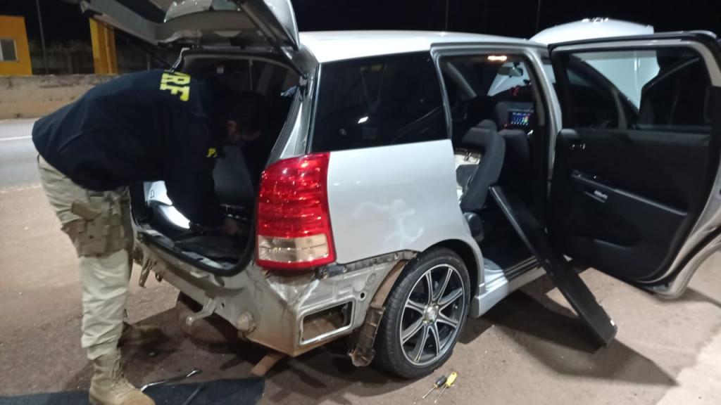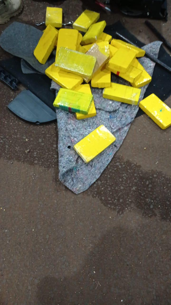 O condutor apresentou informações desencontradas, o que motivou os policiais a realizarem uma fiscalização avançada, que acabou identificando evidências de um compartimento oculto no assoalho do veículo. A abertura do local, revelou que o condutor transportava cocaína dividida em tabletes.