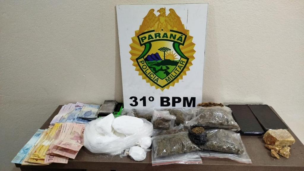 Foram tirados de circulação, 130 gramas de crack, 610 gramas de cocaína e 419 gramas de maconha e R$1.450,00 em espécie, além de um veículo que segundo a PM era utilizado no tráfico de drogas.