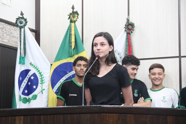 Em oportunidade de fala na Câmara como representante da equipe, Adrielly apresentou o projeto e agradeceu o reconhecimento. “Ficamos muito felizes com a homenagem. Não esperava que haveria toda essa repercussão e reconhecimento. Com certeza é uma grande honra ser reconhecida pelo município.”