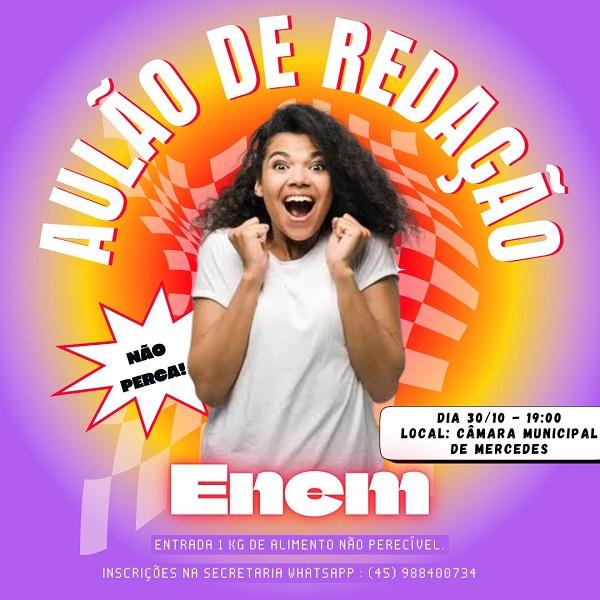 Para ajudar os candidatos a melhorar suas habilidades de redação para o Exame Nacional do Ensino Médio (Enem), o Colégio Estadual Leonilda Papen de Mercedes realizará um “aulão” nesta quarta-feira (30).