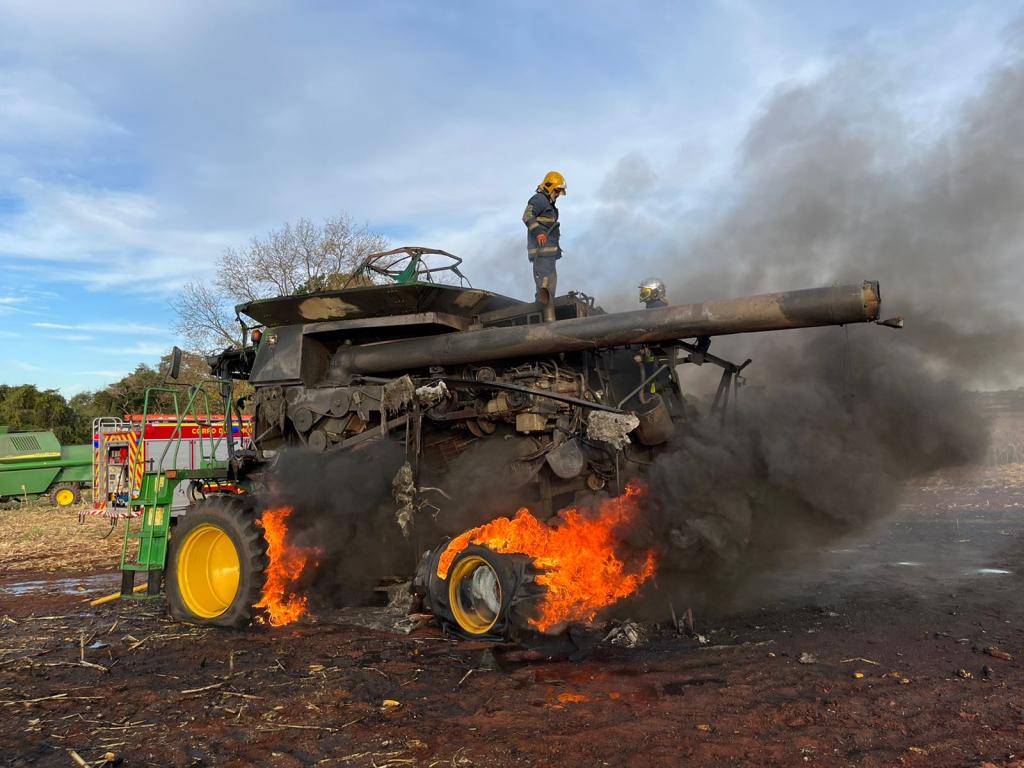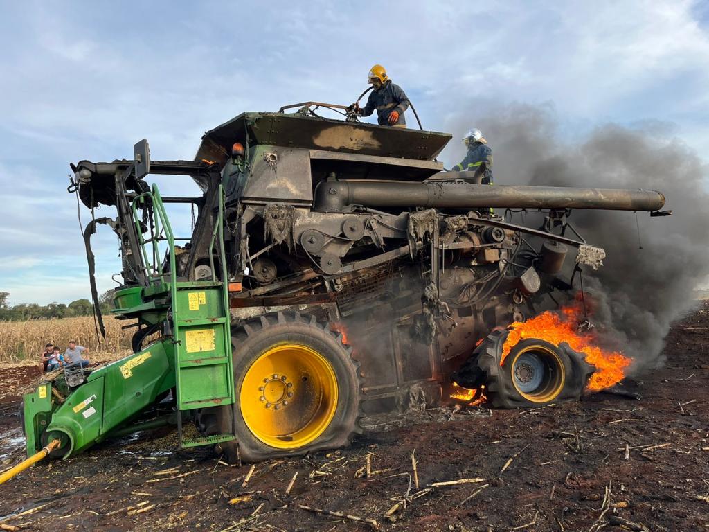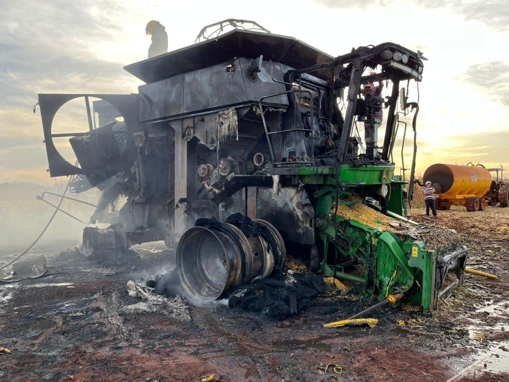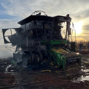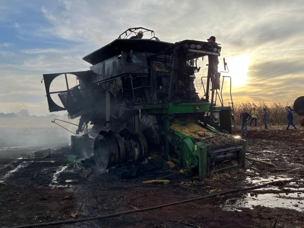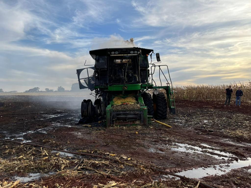 Segundo o senhor que estava colhendo milho em uma área de aproximadamente 40 alqueires, disse que só escutou um forte barulho na parte de trás do maquinário, provavelmente no motor, e segundo depois, notou que se tratava de um incêndio.