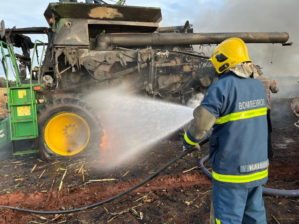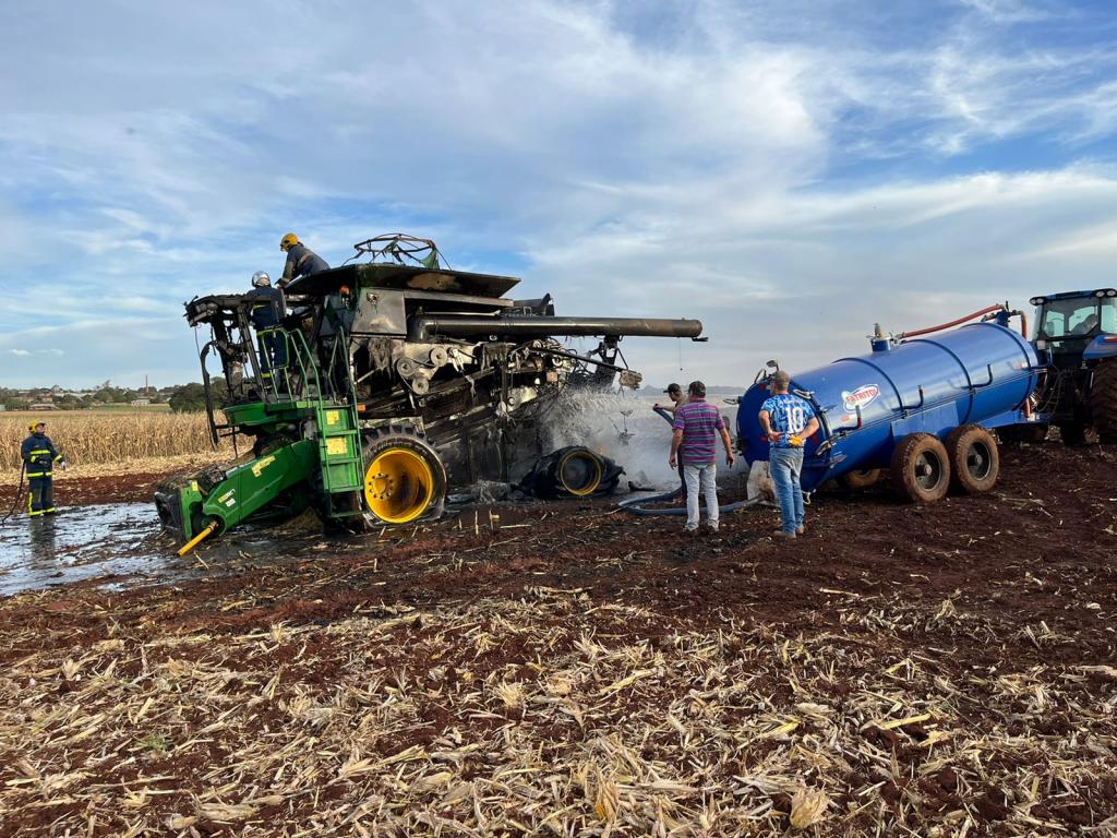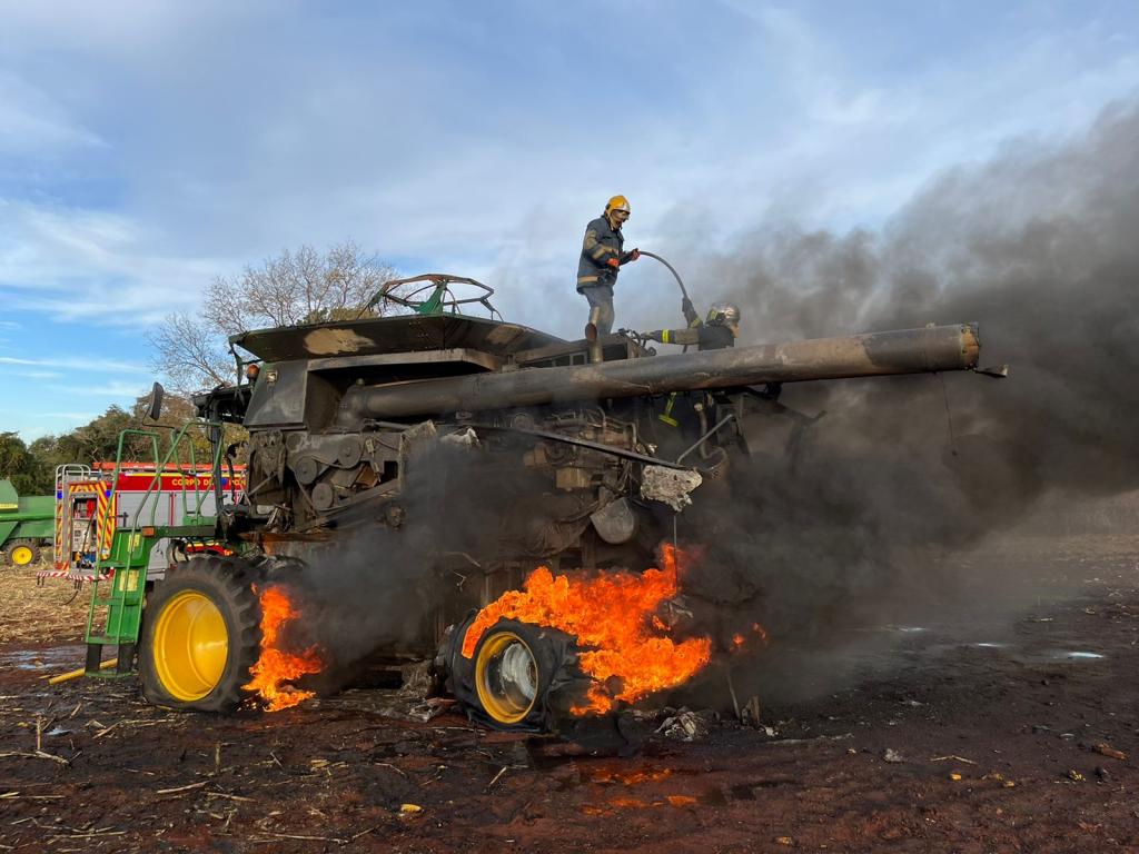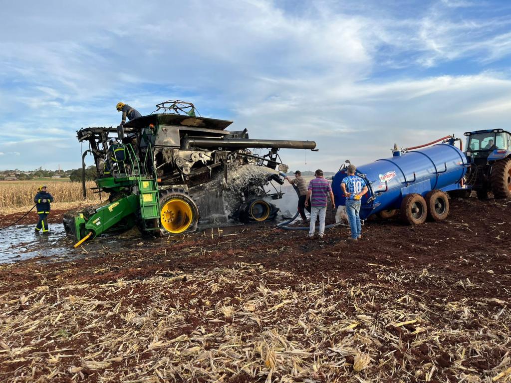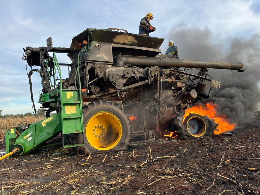 Segundo o senhor que estava colhendo milho em uma área de aproximadamente 40 alqueires, disse que só escutou um forte barulho na parte de trás do maquinário, provavelmente no motor, e segundo depois, notou que se tratava de um incêndio.