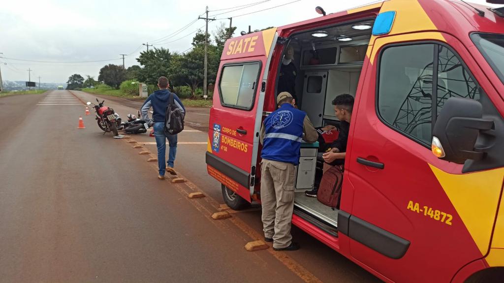 O condutor da Fazer de 19 anos resultou com uma fratura aberta na perna esquerda e o passageiro da outra moto de 18 anos teve escoriações pelo corpo, os dois foram encaminhados para atendimento hospitalar.O Siate atendeu os jovens.