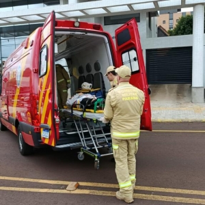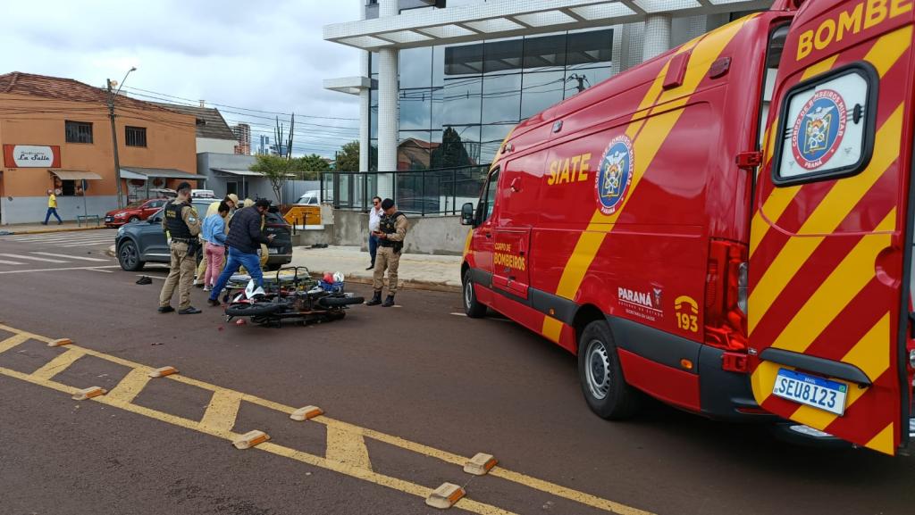 O condutor da moto recebeu atendimento de uma equipe do Corpo de Bombeiros e foi encaminhado ao Hospital Bom Jesus com uma fratura fechada no fêmur da perna direita.