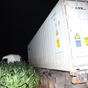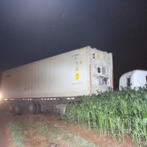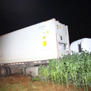 A carreta, após o impacto foi parar a aproximadamente 20 metros dentro de uma lavoura de milho, o condutor não teve ferimentos.
