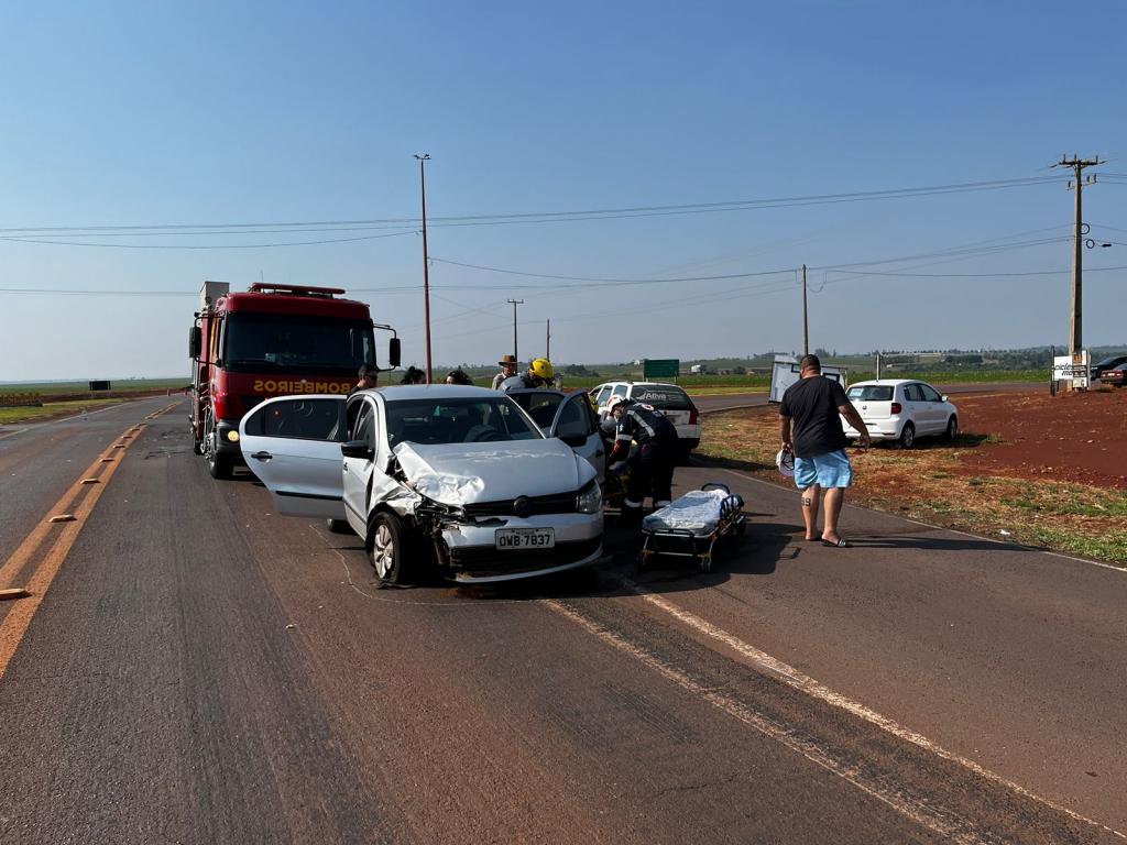 A Chevrolet Zafira fazia o trajeto Nova Santa Rosa a Maripá quando cruzou o trevo houve a colisão com o Gol que seguia de Palotina a Toledo pela rodovia PR 182.