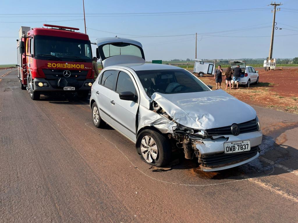 Por volta das 15h00 um Gol com placas de Cascavel e uma Zafira placas Mercosul colidiram no trevo que dá acesso a Maripá e Nova Santa Rosa na PR 491.