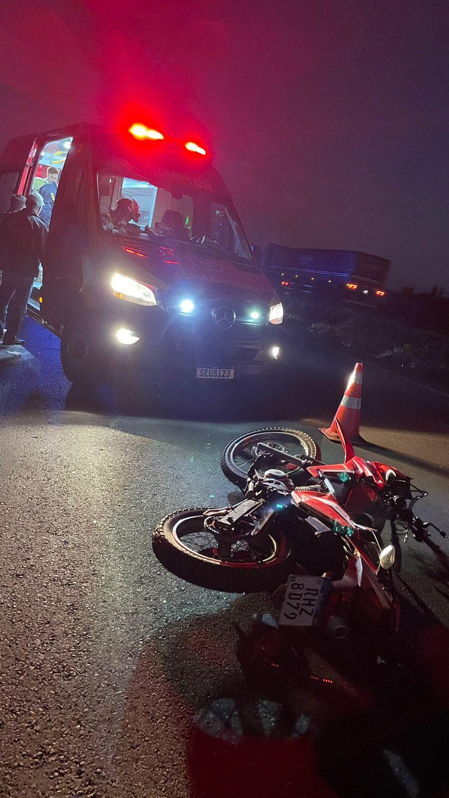 Um acidente de trânsito envolvendo uma motocicleta e um carro deixou um jovem de 18 anos em estado grave na noite desta terça-feira (13). A colisão ocorreu por volta das 18h30 na BR-163, próximo ao distrito de Vila Ipiranga, Toledo.