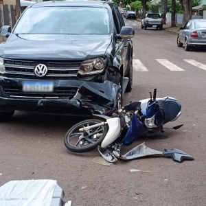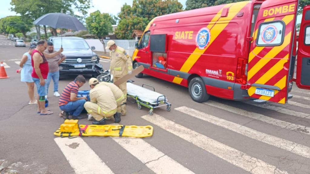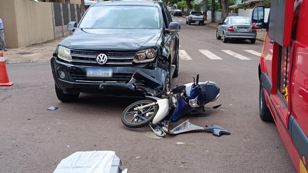 Uma colisão entre uma motocicleta e uma caminhonete foi registrada no início da tarde desta quarta-feira (17), no bairro Vila Pioneira, em Toledo. O acidente aconteceu no cruzamento da Rua do Herbal com a Rua Thomas Edison.