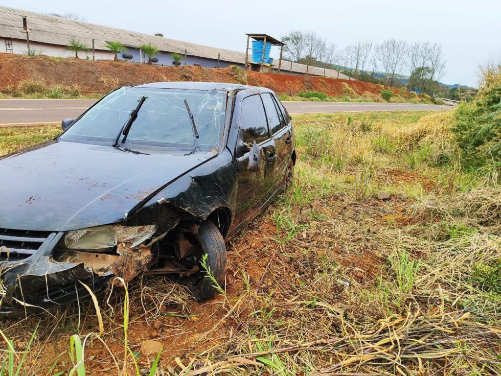 O condutor de um automóvel VW/Gol ficou ferido após um acidente na rodovia PR-475, nas proximidades do acesso a Sede Progresso, entre Francisco Beltrão e Verê.