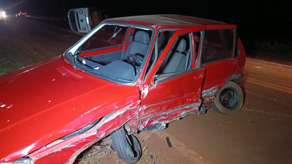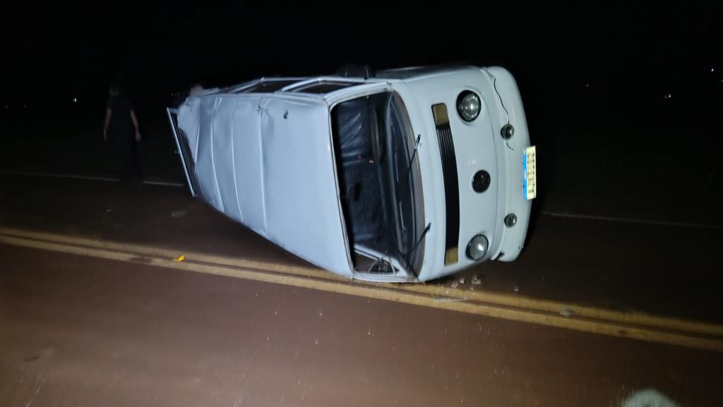 Com o impacto, a Kombi, com placas de Cascavel, capotou sobre a pista. O Honda Civic, também de Ouro Verde do Oeste, saiu para a margem direita da rodovia, enquanto o Fiat Uno parou na pista, no sentido contrário ao de sua circulação.