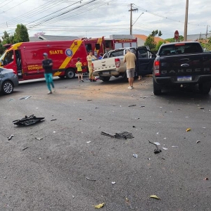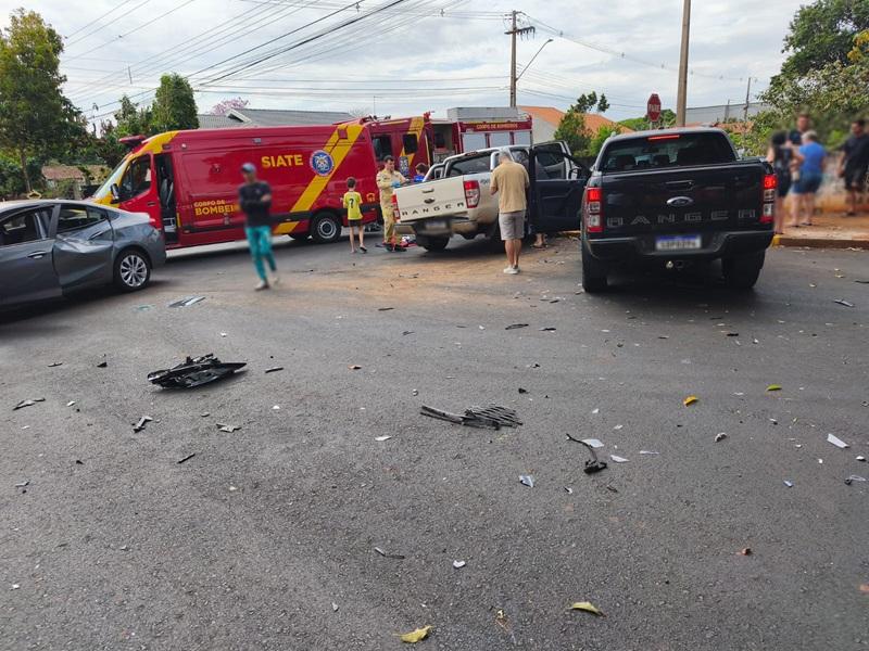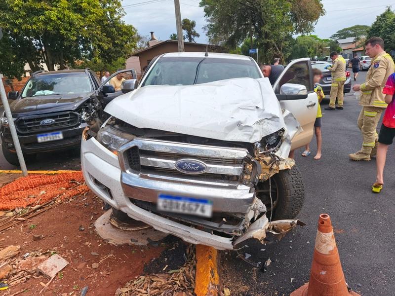 A batida envolveu três veículos, sendo um automóvel e duas caminhonetes Ford Ranger. O choque foi intenso e resultou em danos de média monta nas caminhonetes, enquanto o automóvel teve a parte frontal bastante destruída.